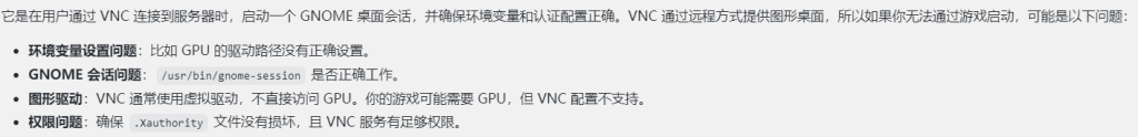 同时,VNC 默认不支持 GPU 加速,可以尝试 NoMachine 或其他远程桌面工具。