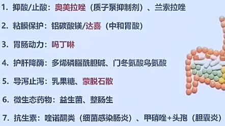 - 消化道疾病治疗常见的抑酸/止酸药物包括:奥美拉挫,兰索拉挫