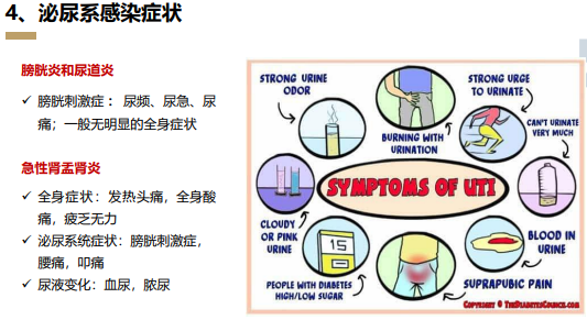 下尿路感染以局部症状为主,明显尿频尿急尿痛。原则:别喝快乐水,不要憋尿