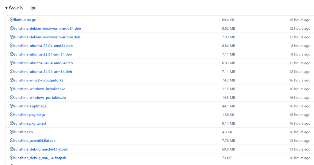 Windows选下面sunshine-windows-installer即可,其它看着来。