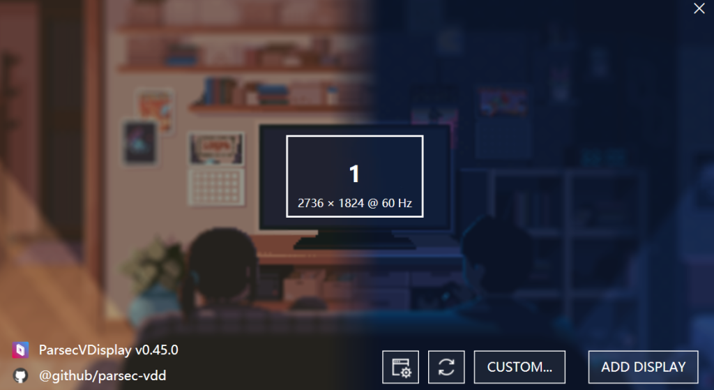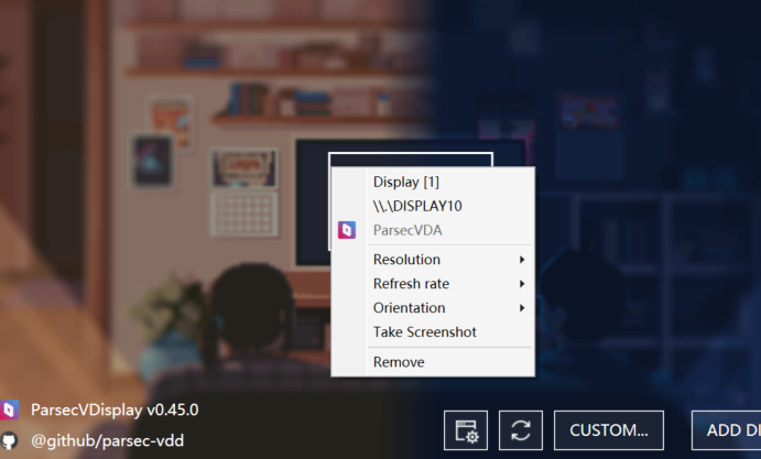 然后得到了这样的,创建你的虚拟屏幕。右键屏幕添加即可,设置可以配置成你平板的分辨率,这样展示效果更好。完成后点击右下角ADD DISPLAY,这样就展示成功了。