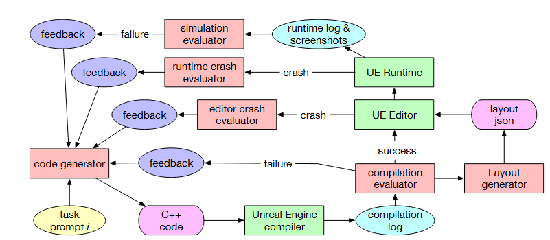 - 对于代码生成部分,会先根据前面描述生成一个详细的提示,然后生成cpp代码。接着去编译,根据错误,自动的反思优化,不断的尝试。直到任务解决或者到达一定失败次数后放弃