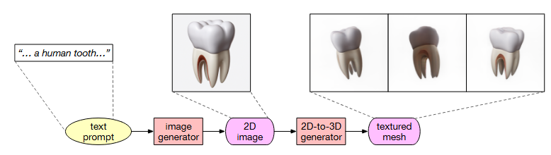 - 接着是模型怎么出来呢。先把前面的描述,比如说一颗牙齿什么的文生图,然后再图生模型,再一些格式转换就可以用了