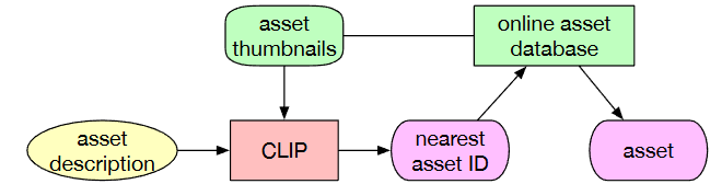 - 对于需要下载的资源,根据文字相似度找到最相近的。比如说一把木制椅子,就根据这个去资源库搜索,把最相似的下载回来用。