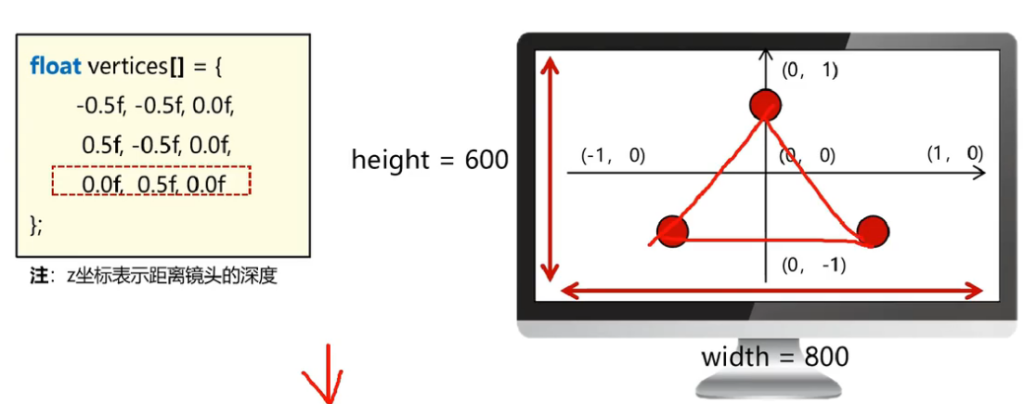 渲染成如上形状,这就是基本的原理。当然实际上坐标不可能直接用,还要取决于摄像头的观察和改变。