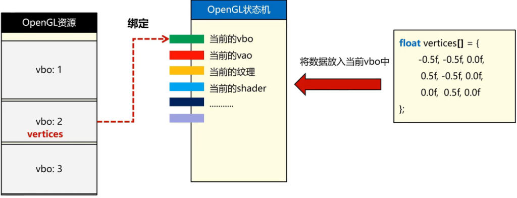 那怎么做呢,其实就可以在vbo绑定vao的时候,就把这个描述id获取了,然后绑定