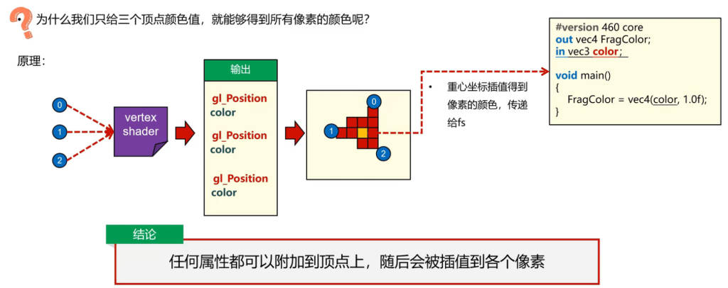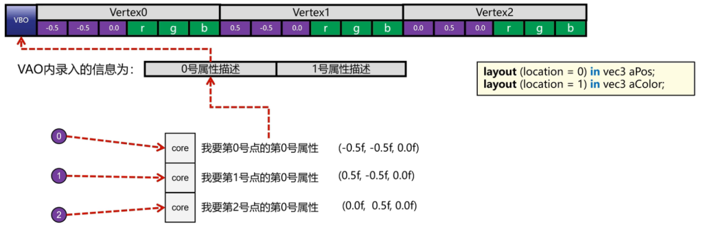 在vs中的输入变量,成为属性变量,是通过vao的描述,从vbo中读取顶点属性