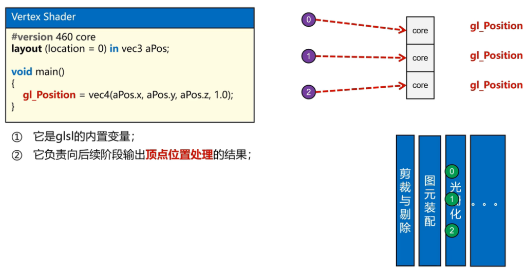 - 把3D坐标转换为另一种3D坐标,同时对顶点属性进行基本处理