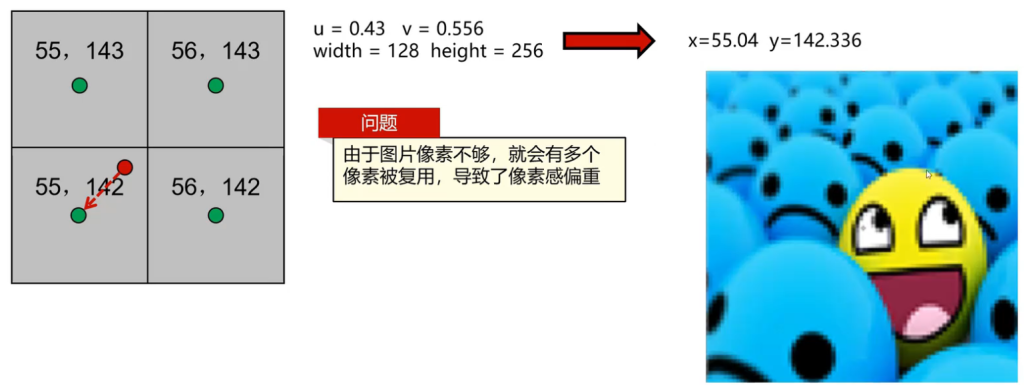- 临近像素(nearest):根据uv坐标计算出来取最近的整数