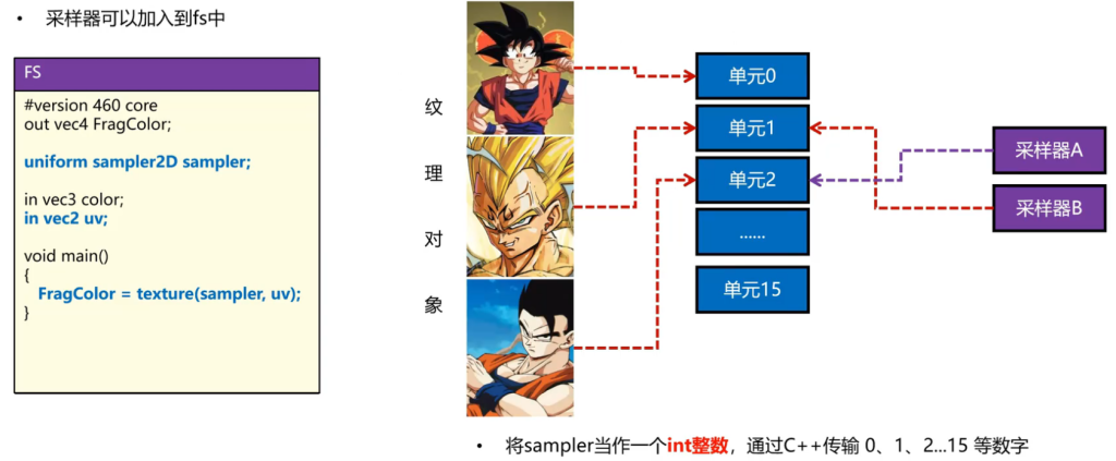 - 用于产生最终的颜色。包含着3D场景的各种数据(比如光照、阴影、光的颜色等等),这些数据可以被用来计算最终像素的颜色。