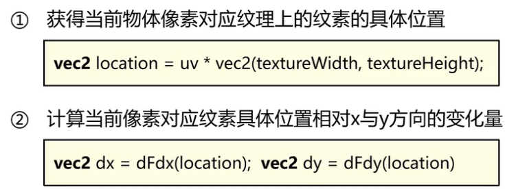- 答:通过glsl中的求偏导函数计算变化量决定