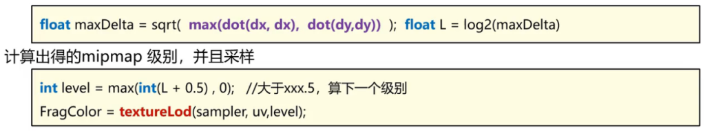 可以获取当前纹素的变化量还有像素的变化量,然后去大的log一下就得到了具体的层级。