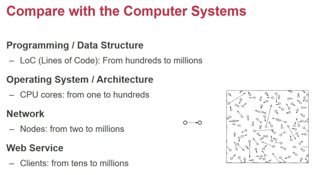 尽管 M.A.L.H 四个方法可以有效降低复杂性,但找到“正确的模块化/抽象/分层/层级方法”仍然充满挑战。在许多情况下,必须针对具体的场景进行逐案分析(case-by-case)。以网络系统为例,从早期的一台设备、数百行代码发展到如今几百万台设备、数千万行代码、成千上万用户时,系统的复杂性呈指数级增长。