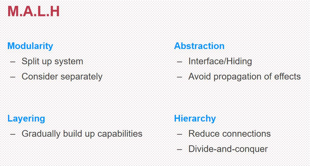 在复杂性控制中,主要依赖以下四个方法(M.A.L.H):