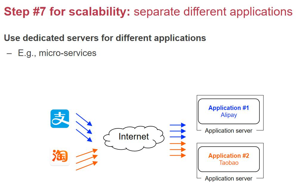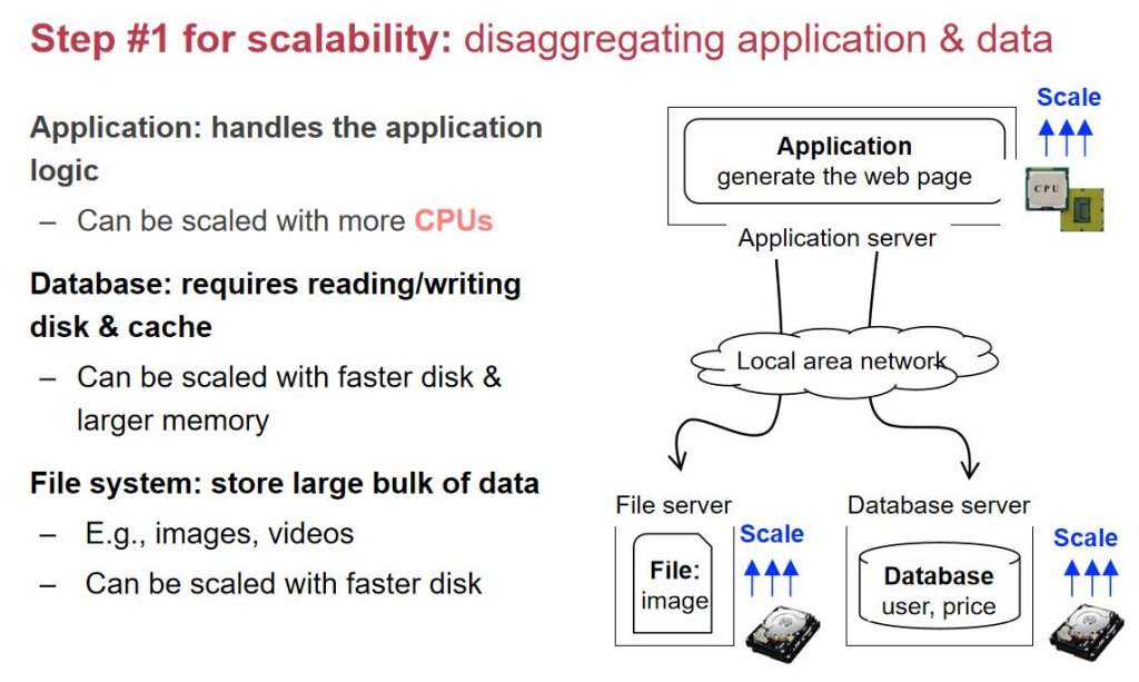 最初,所有东西都在一台服务器上运行,数据库存放数据,文件系统存图片,CPU负责计算。这个架构简单,但问题是扩展性非常差: